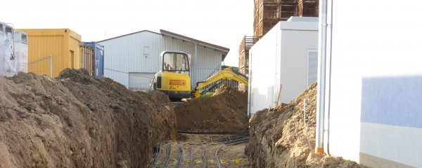Die Rohbauarbeiten für die Energiespeicheranlage sind in vollem Gange.